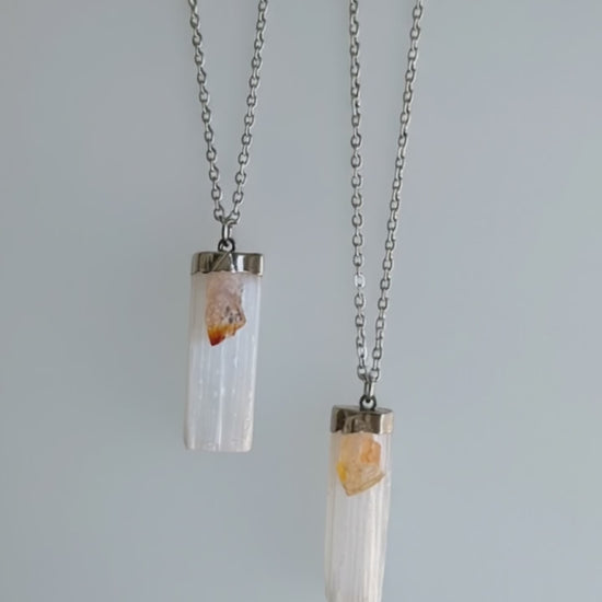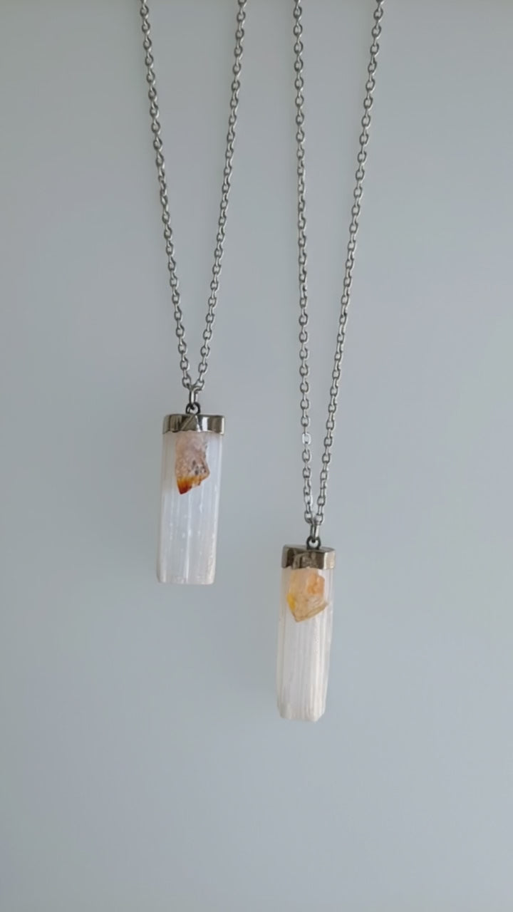 A talisman for spiritual renewal and higher clarity. The Ascending Light Necklace blends the pure, luminous energy of Selenite with the golden optimism of Citrine, creating a radiant synergy of cleansing and manifestation.