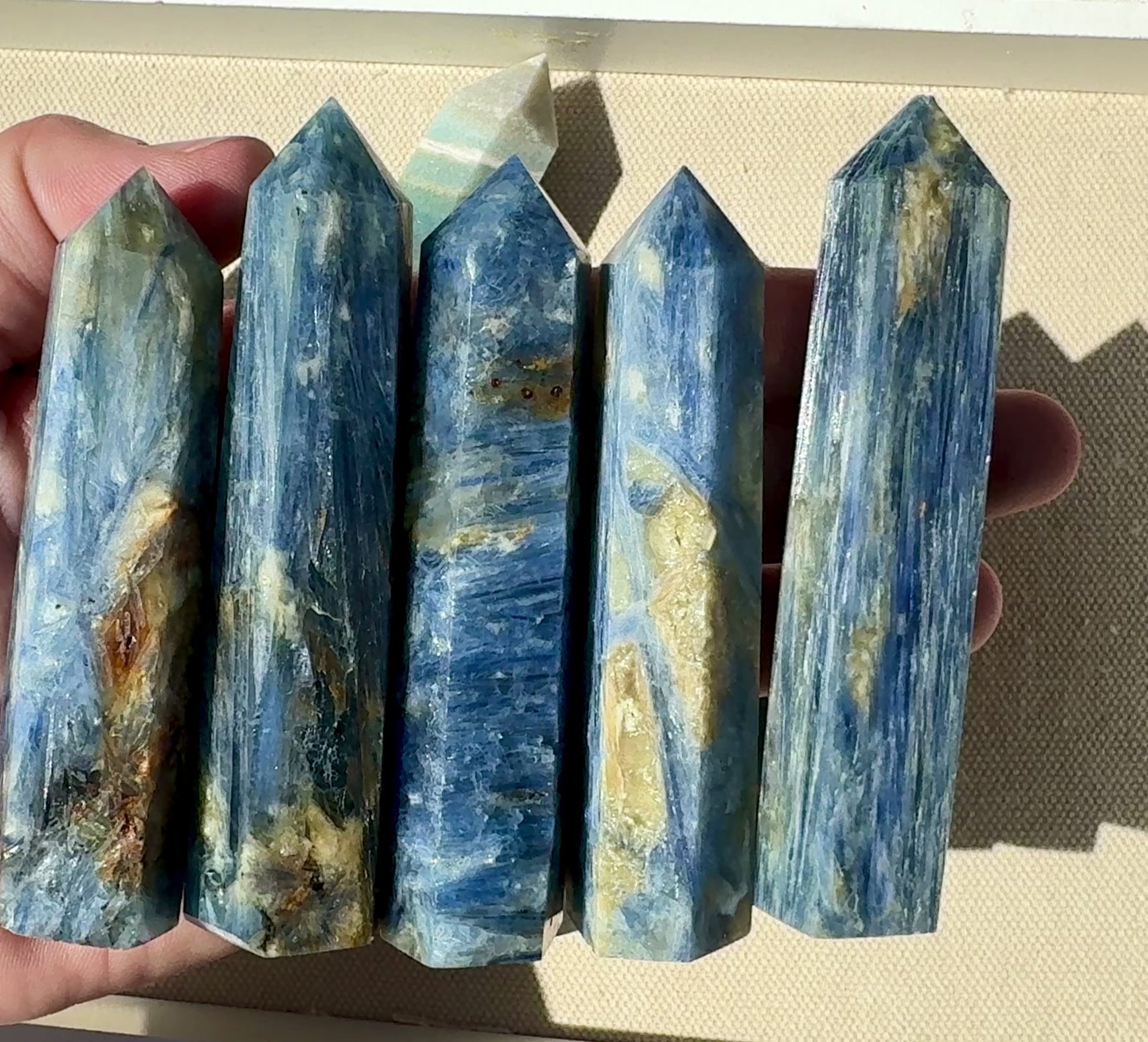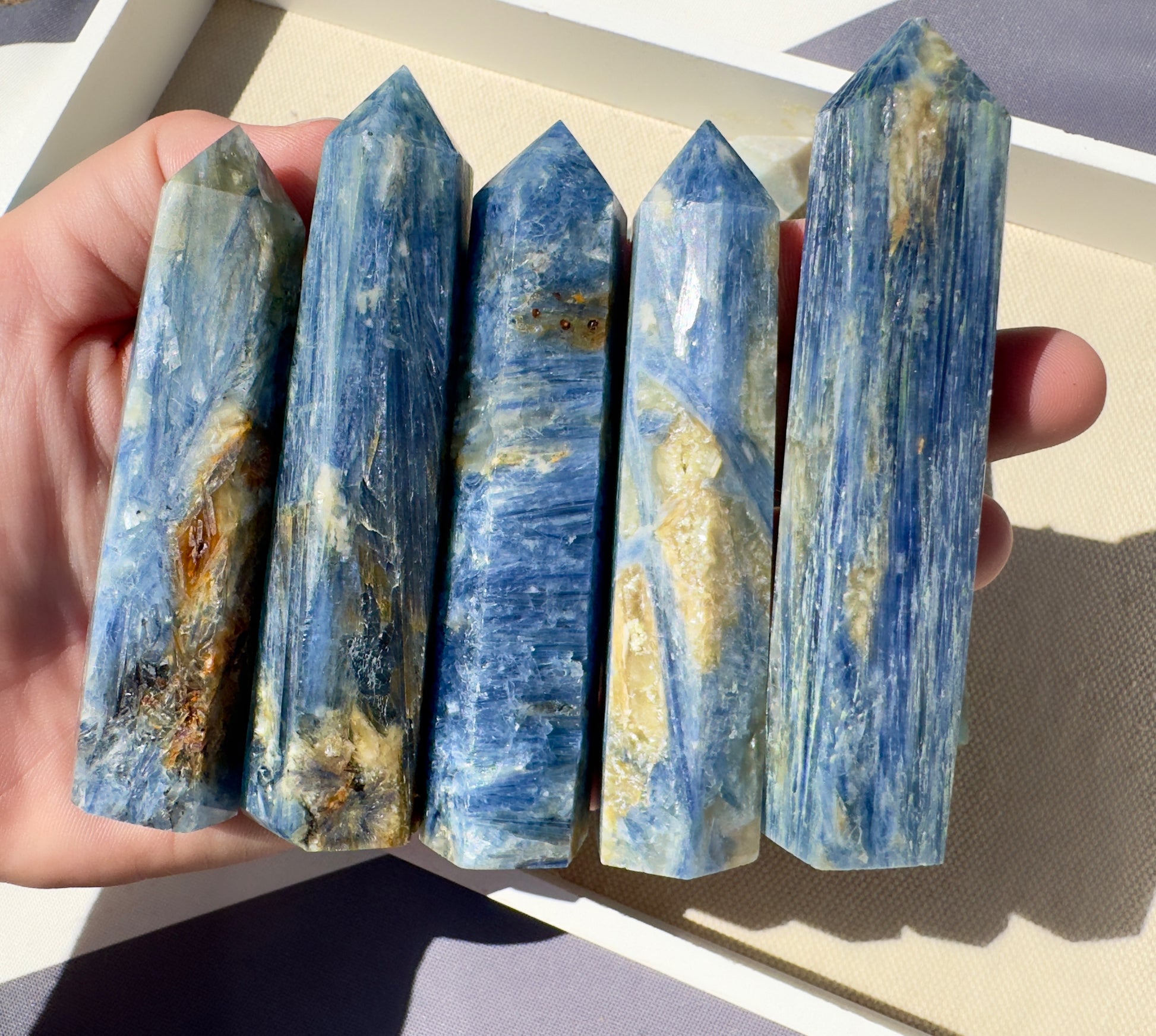 Kyanite is perfect for the throat chakra, focusing on communications, self expression and speaking your truth. It is also believed to enhance vibrational frequencies in your body- helping to align all chakras.