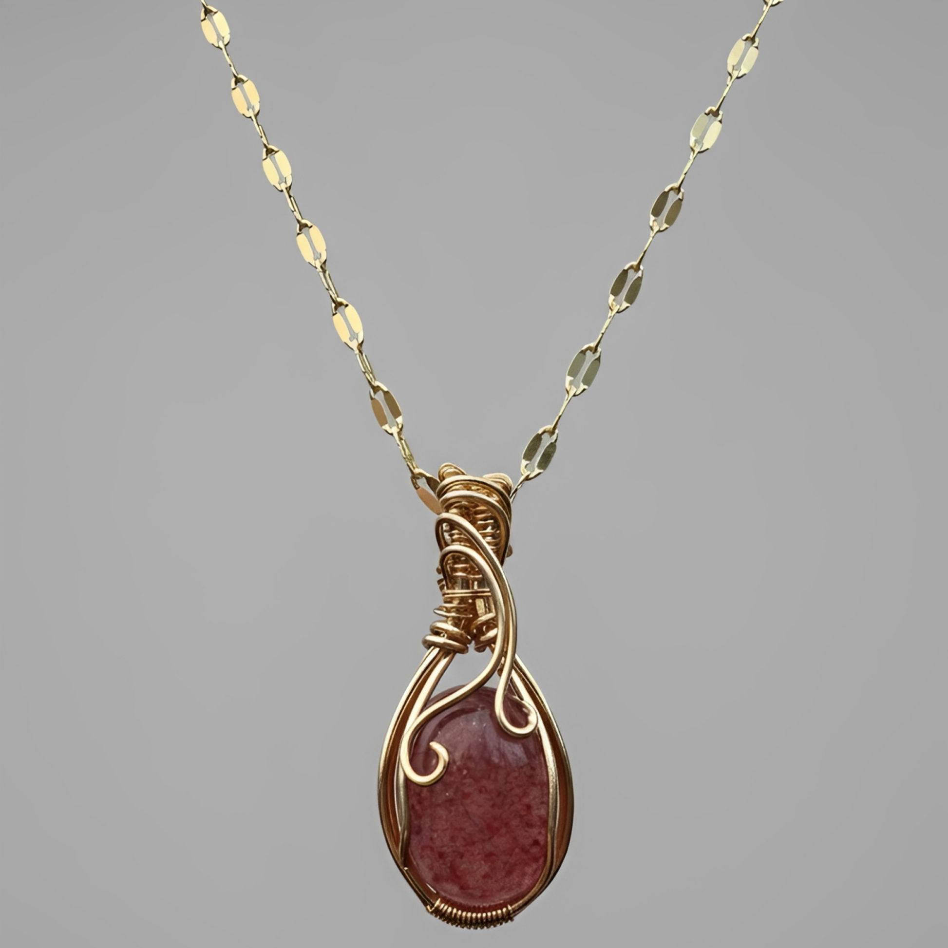 Devoted-Strawberry Quartz Wire-Wrapped Pendant