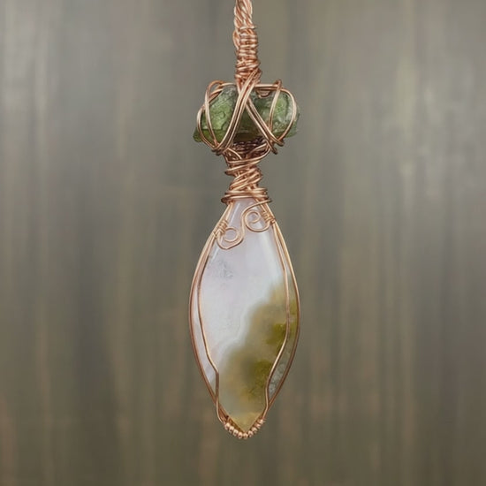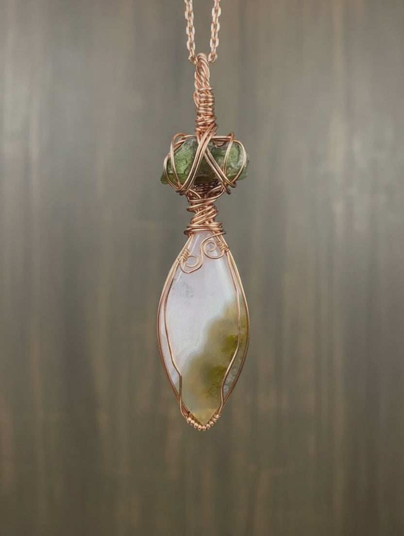 Moldavite + Moss Agate with Druzy