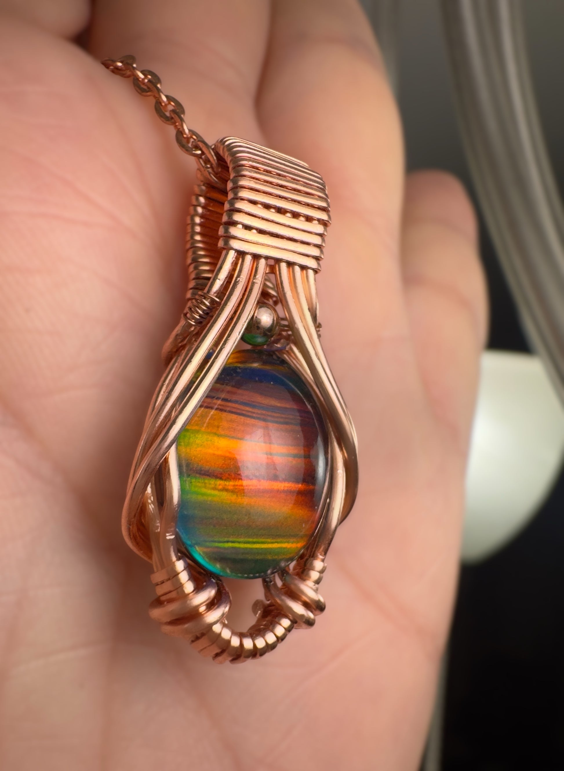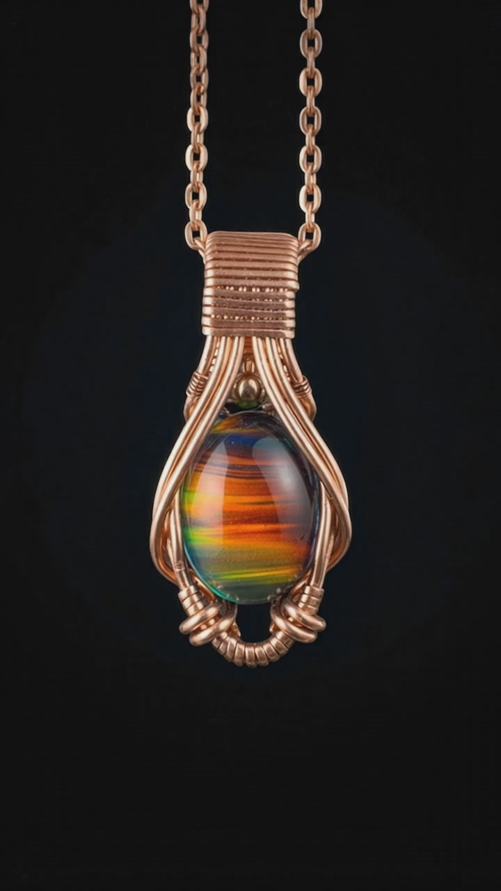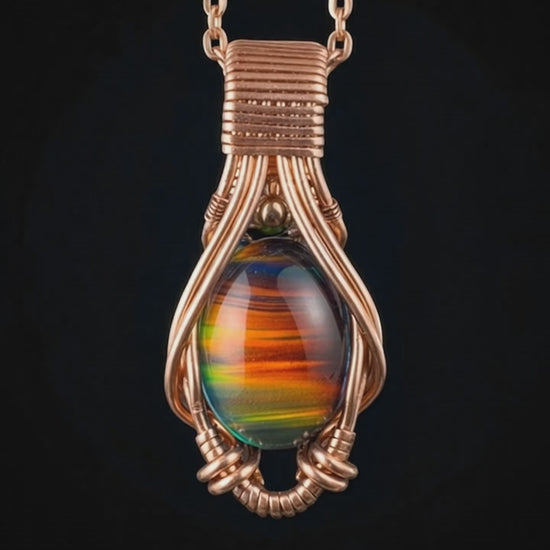 Wrapped with mirror precision and purpose, this pendant radiates a soft energy of renewal, balance, and transformation. The rainbow hues shimmer like a living sunset, reminding you to slow down, release, and trust the natural rhythm of change.