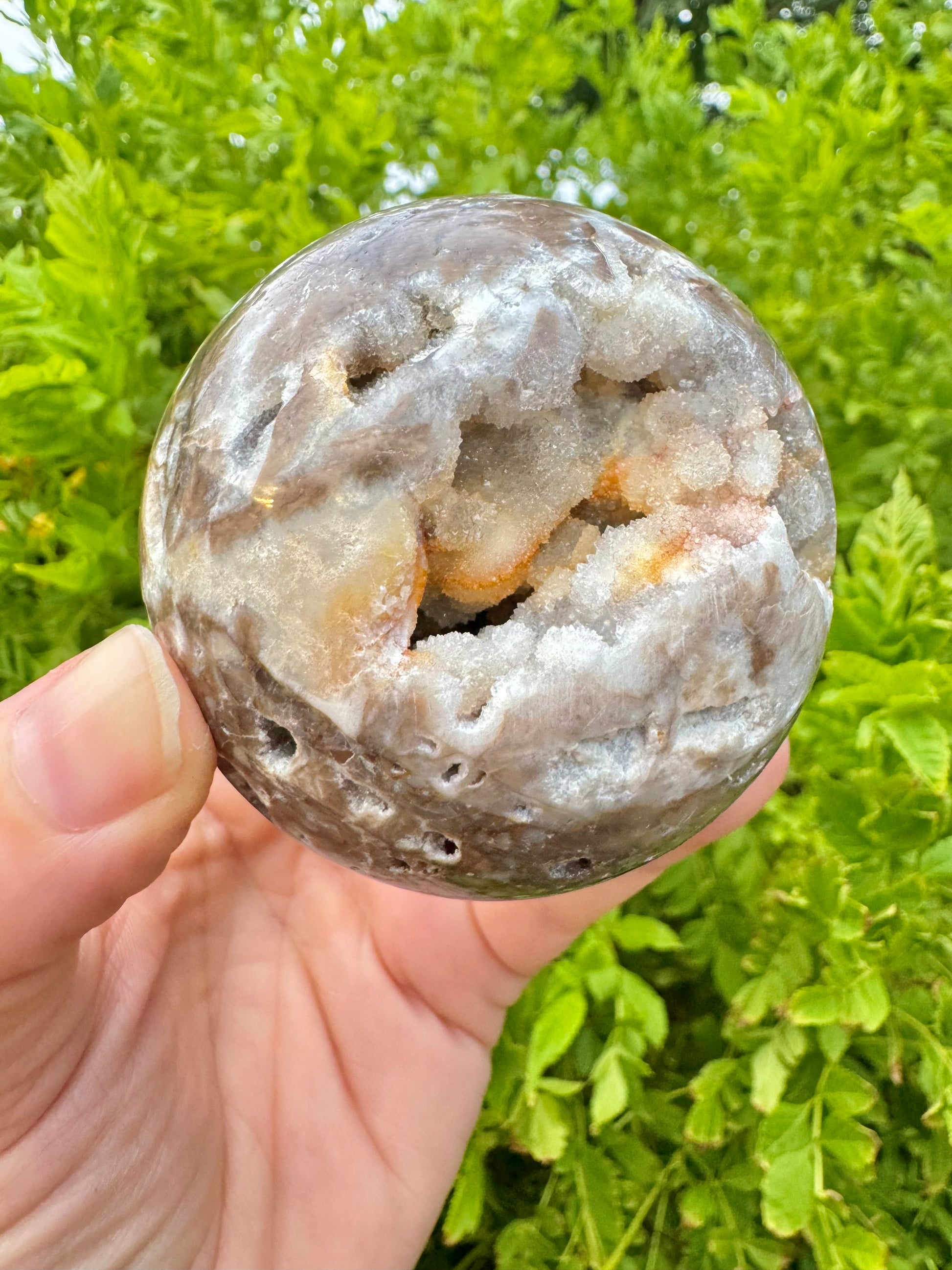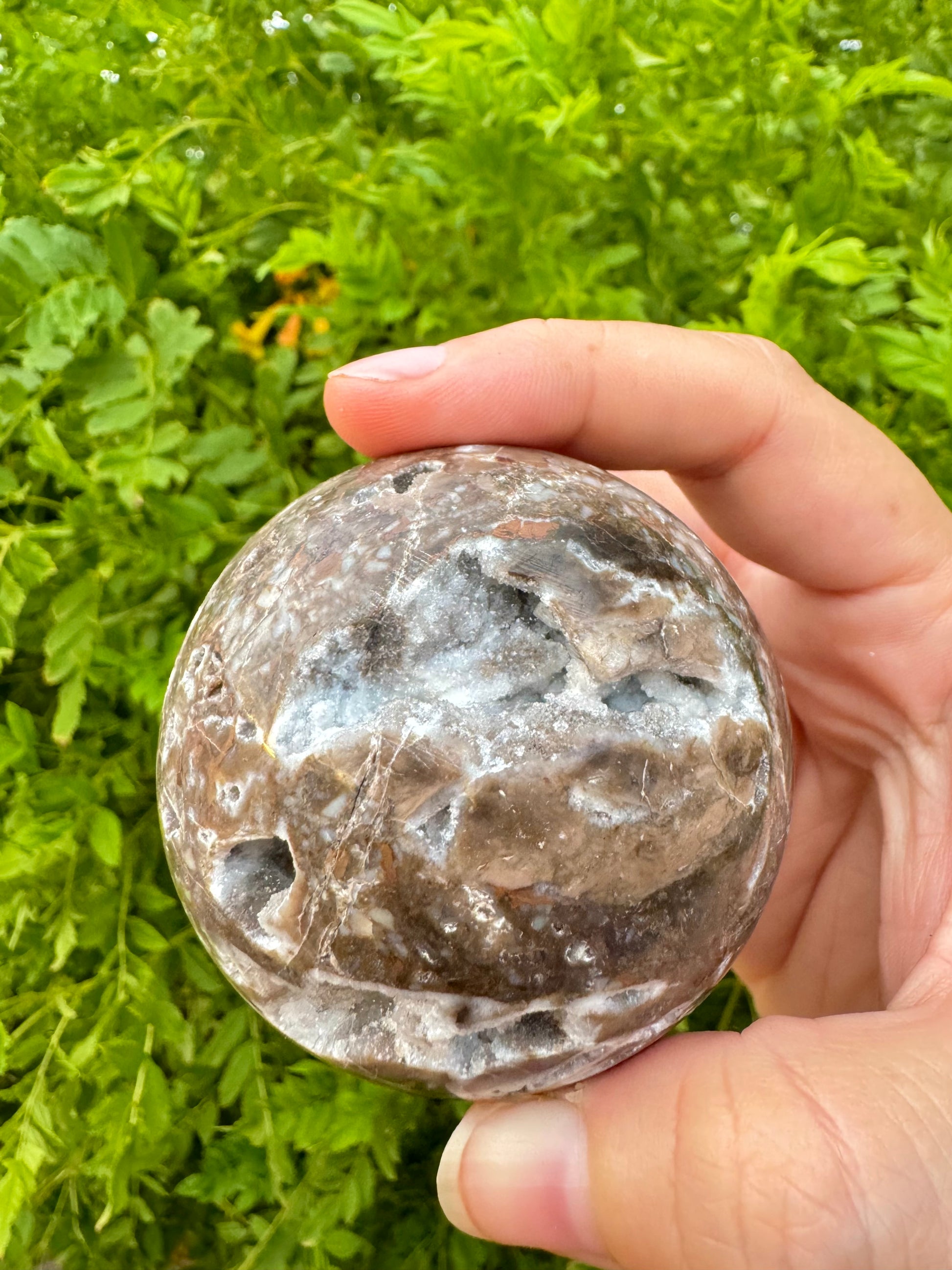 Chalcedony with druzy combines calming and balancing energy with the sparkle of amplified spiritual power. Chalcedony soothes emotions, promotes harmony, and fosters empathy, while druzy enhances clarity, intuition, and manifestation. Together, they offer protection, healing, and a sense of renewal, making it perfect for peace and spiritual growth.