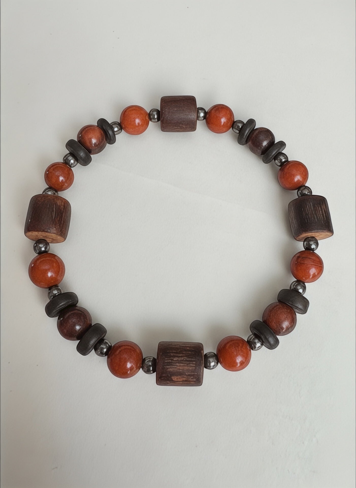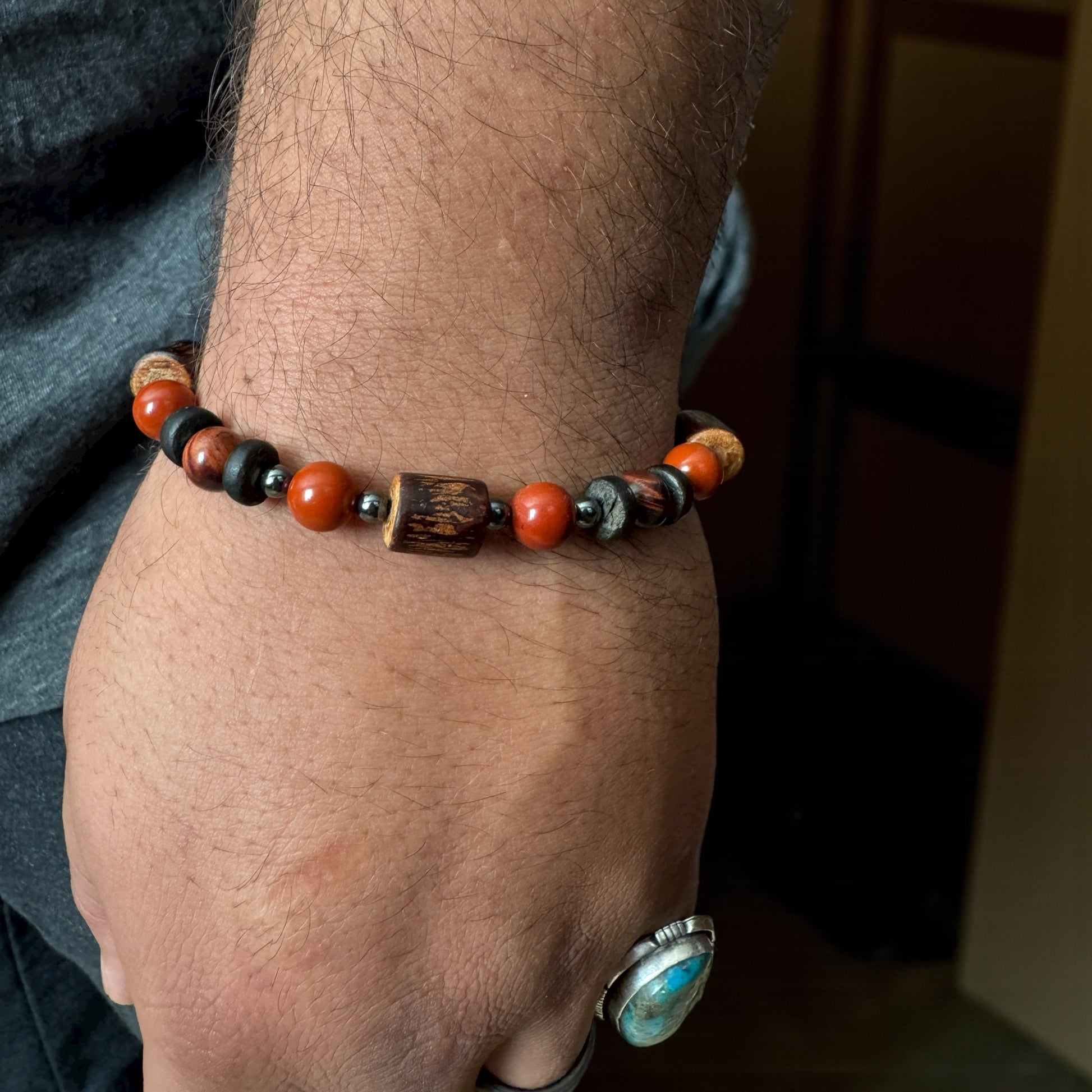 Handcrafted with the grounding force of Red Jasper, the courage and vitality of Red Tiger’s Eye, the protective shield of Hematite, and the earthy warmth of natural wood beads, Tribal Roots embodies connection to heritage, strength, and stability.