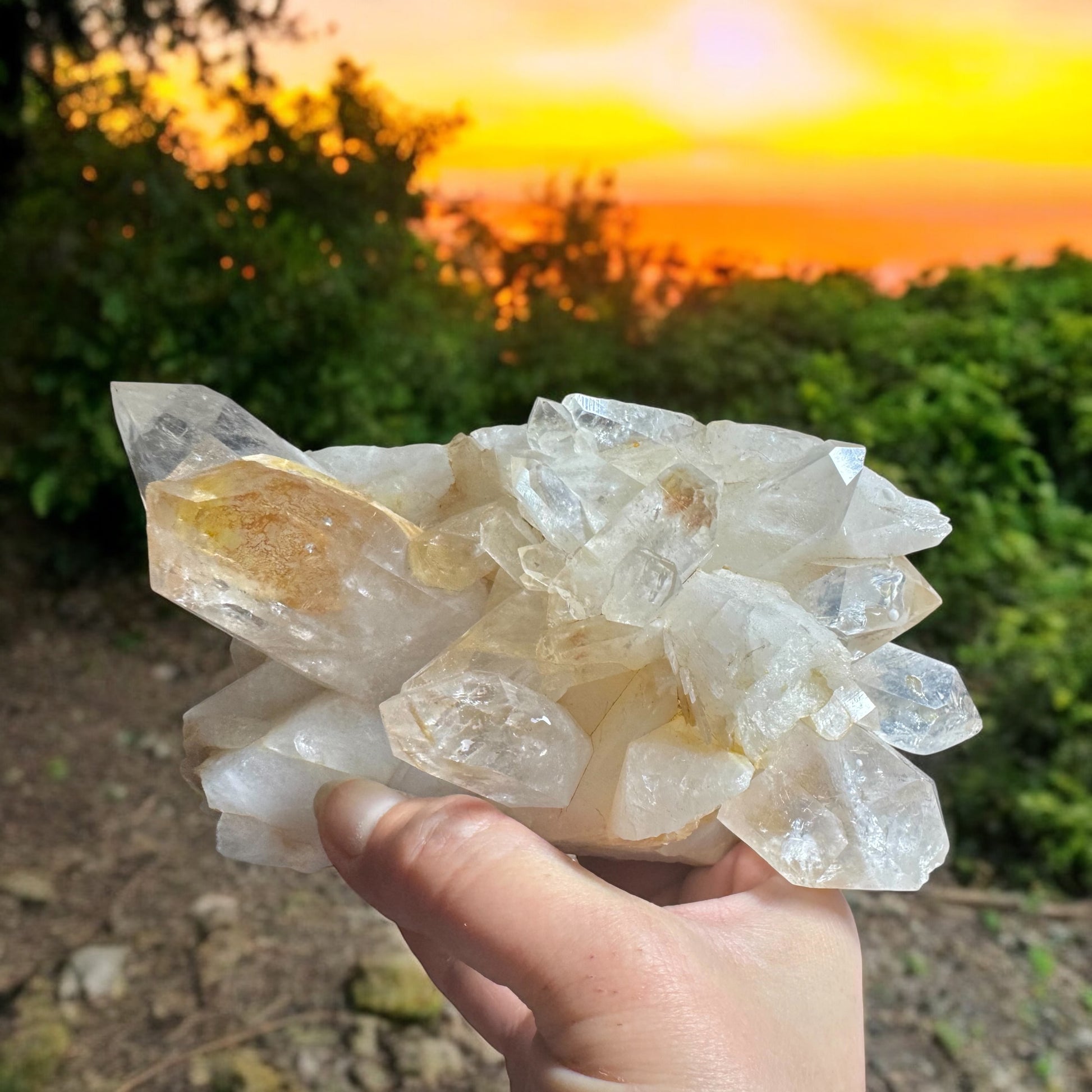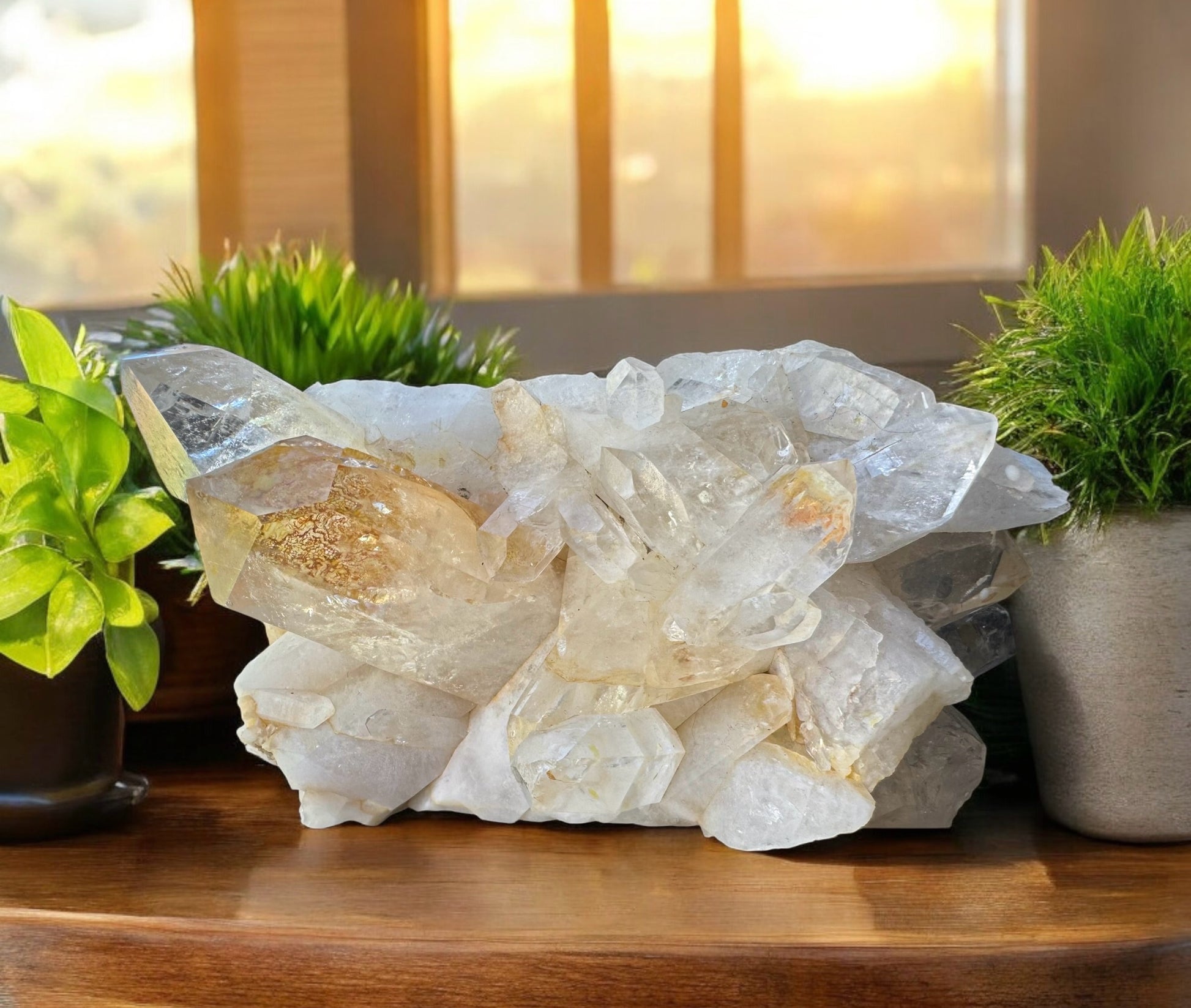 Embrace the natural essence of this 3lb 5oz clear quartz cluster point, boasting a stunning display of rainbow hues. With points all over, you can easily catch glimpses of natural inclusions as you gaze upon this captivating beauty.